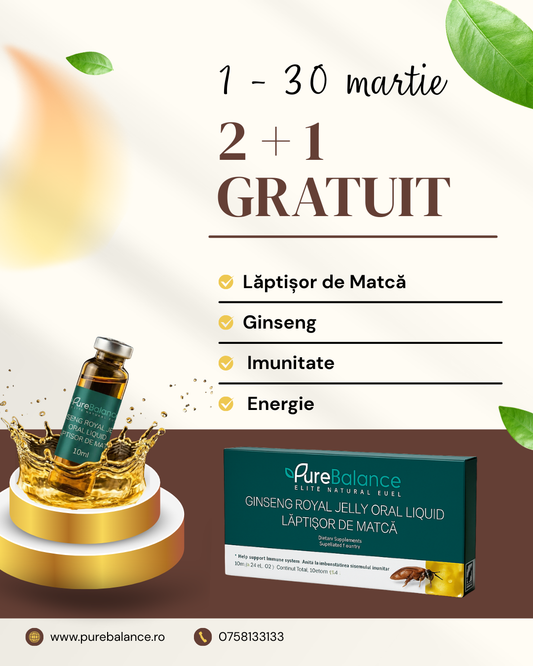 - 👑 Lăptișor de Matcă cu Ginseng: Vitalitate regală și un boost natural de imunitate când toți ceilalți sunt răciți.