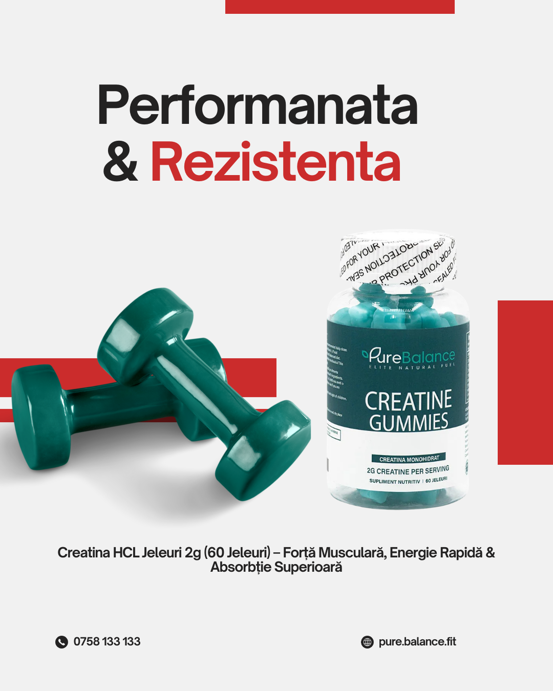 🏋️ 1. Explozia Musculară: Creatine Gummies (HCL) Zero Retenție Apă