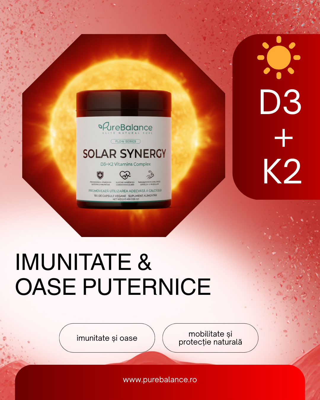 🎁 Bonus Exclusiv Solar Synergy: Primești gratuit complexul D3+K2, elementul esențial pentru un metabolism sănătos și o imunitate de fier.
